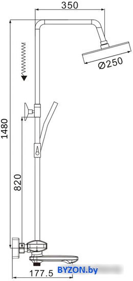 | Диаметр (ширина) верхнего душа | 250 мм |