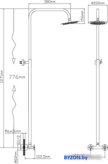 Код товара: 4106264 Рейтинг: 60 3| -14,66 душевая система (с верхним душем), настенный монтаж, вентиль смеситель, верхний душ 200 мм
