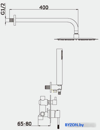 | Комплектация | верхний душ, ручной душ (лейка), держатель лейки, шланг, смеситель |