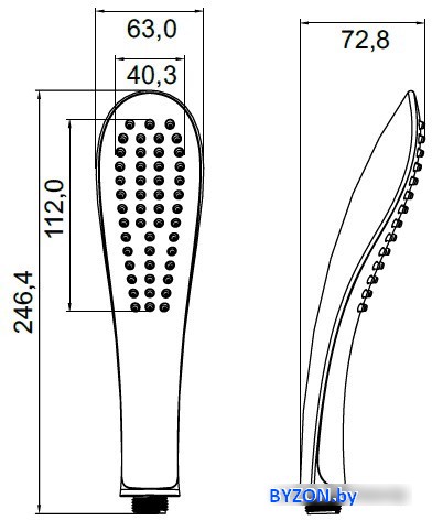 | Диаметр (ширина) ручного душа | 112 мм (40 мм) |