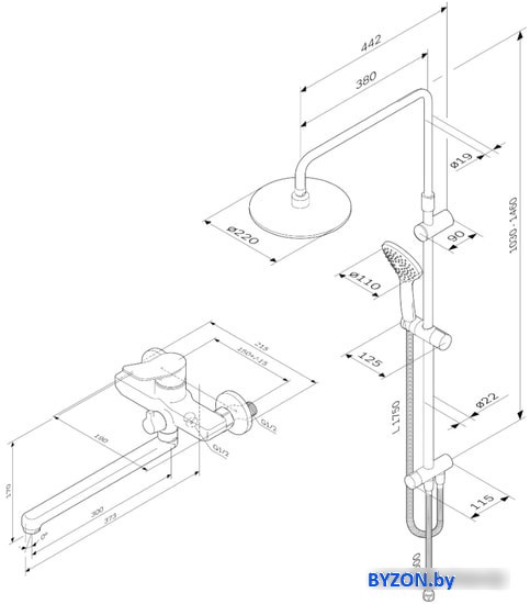 Код товара: 2210453 Рейтинг: 161 4| -25,9 душевая система (220 мм), настенный монтаж, механический смеситель