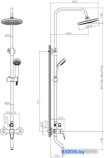 | Диаметр (ширина) верхнего душа | 200 мм |