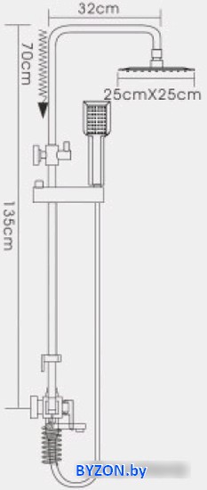 | Диаметр (ширина) верхнего душа | 250 мм |