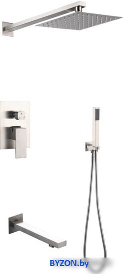 | Комплектация | верхний душ, ручной душ (лейка), держатель лейки, шланг, смеситель, излив для ванны |