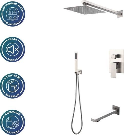 Код товара: 4028066 Рейтинг: 230 4| душевая система (с верхним душем), скрытый монтаж, механический смеситель, верхний душ, ручной душ