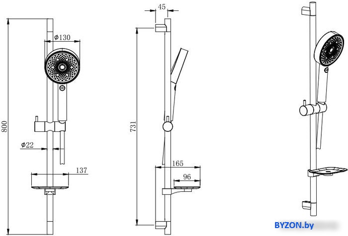 | Комплектация | штанга, ручной душ (лейка), держатель лейки, шланг, мыльница или держатель для мыла |