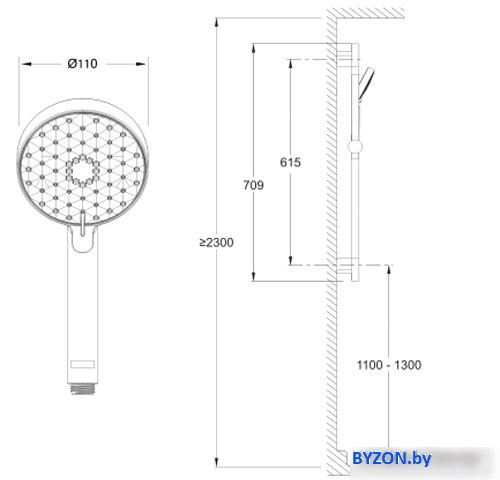 | Диаметр (ширина) ручного душа | 110 мм |