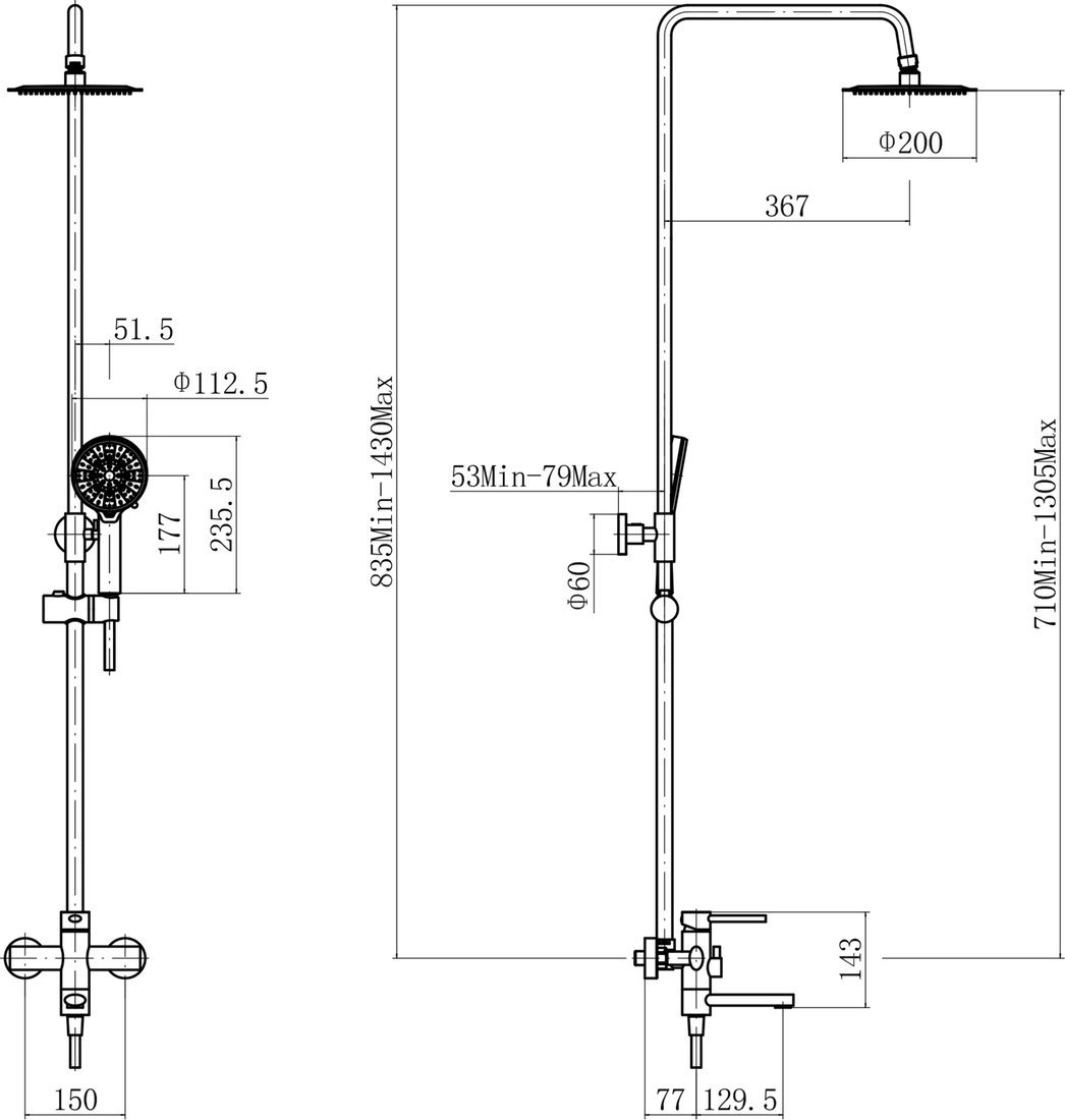 | Диаметр (ширина) верхнего душа | 200 мм |