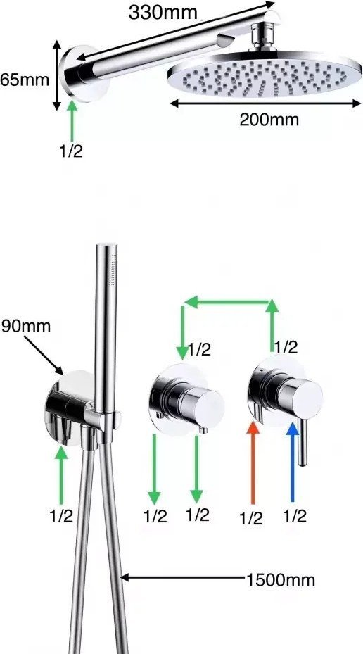 | Комплектация | верхний душ, ручной душ (лейка), шланг |
