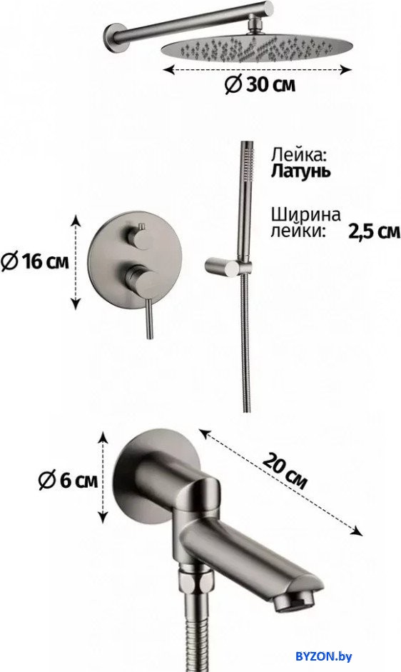 | Диаметр (ширина) верхнего душа | 300 мм |