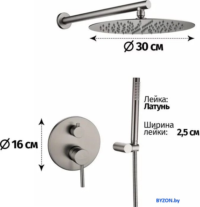 | Диаметр (ширина) верхнего душа | 300 мм |