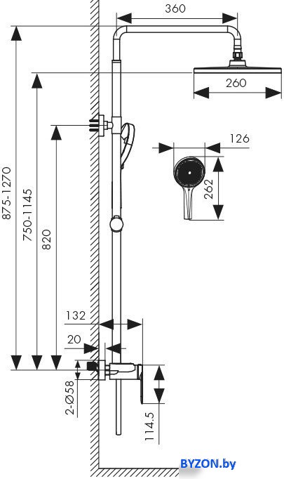| Диаметр (ширина) верхнего душа | 260 мм |