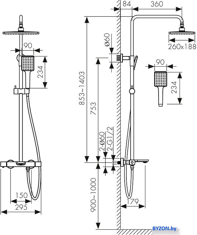 Код товара: 4949681 Рейтинг: 490 8| душевая система (с верхним душем), настенный монтаж, термостатический смеситель, верхний душ 260 мм, ручной душ 90 мм