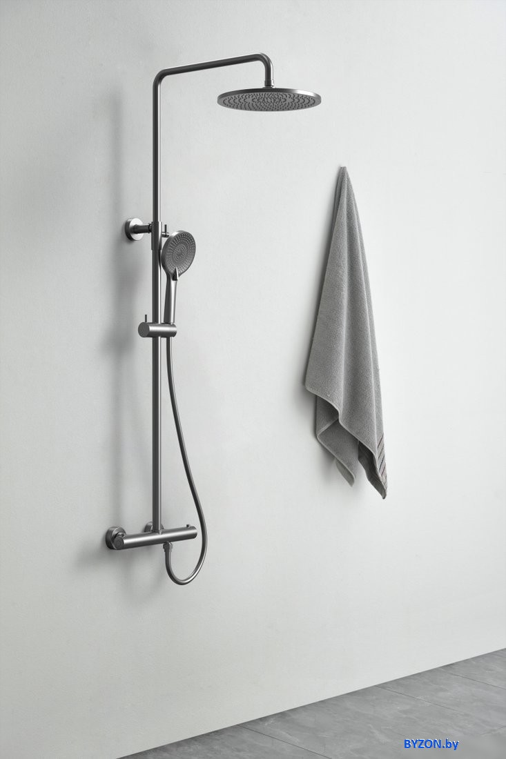 Код товара: 4949700 Рейтинг: 504 5| -886,71 душевая система (с верхним душем), настенный монтаж, термостатический смеситель, верхний душ 250 мм, ручной душ 120 мм