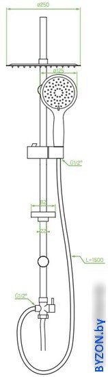 | Диаметр (ширина) верхнего душа | 250 мм |