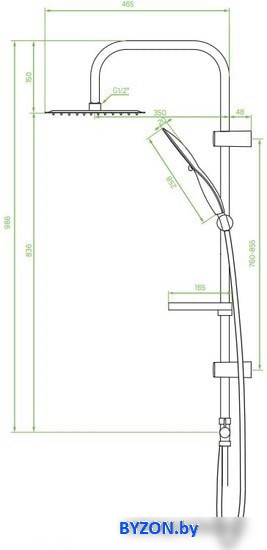 | Вылет верхнего душа | 350 мм |