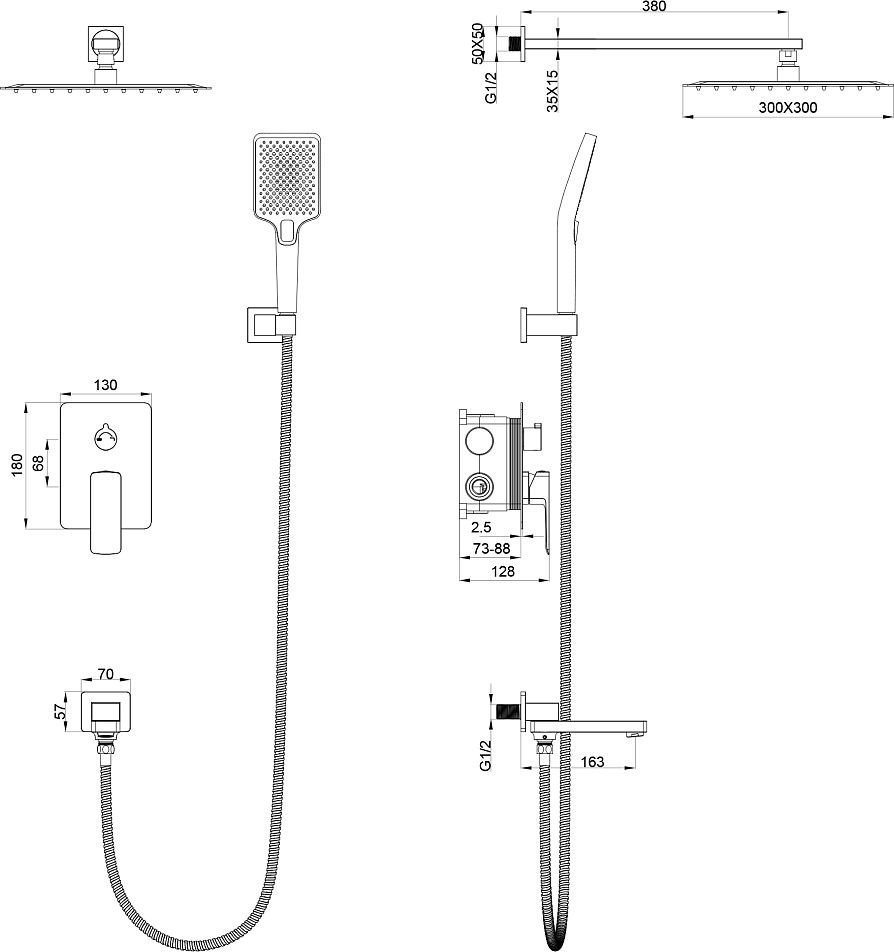 | Диаметр (ширина) верхнего душа | 300 мм |