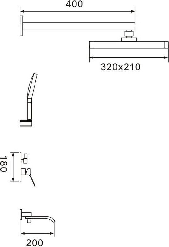 | Диаметр (ширина) верхнего душа | 320 мм |