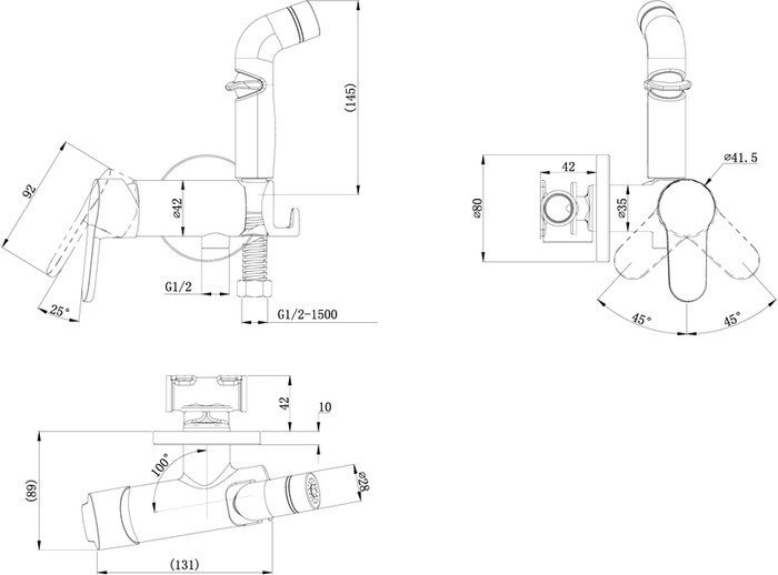| Лейка для биде | Да (душевой шланг 1.5 м) |