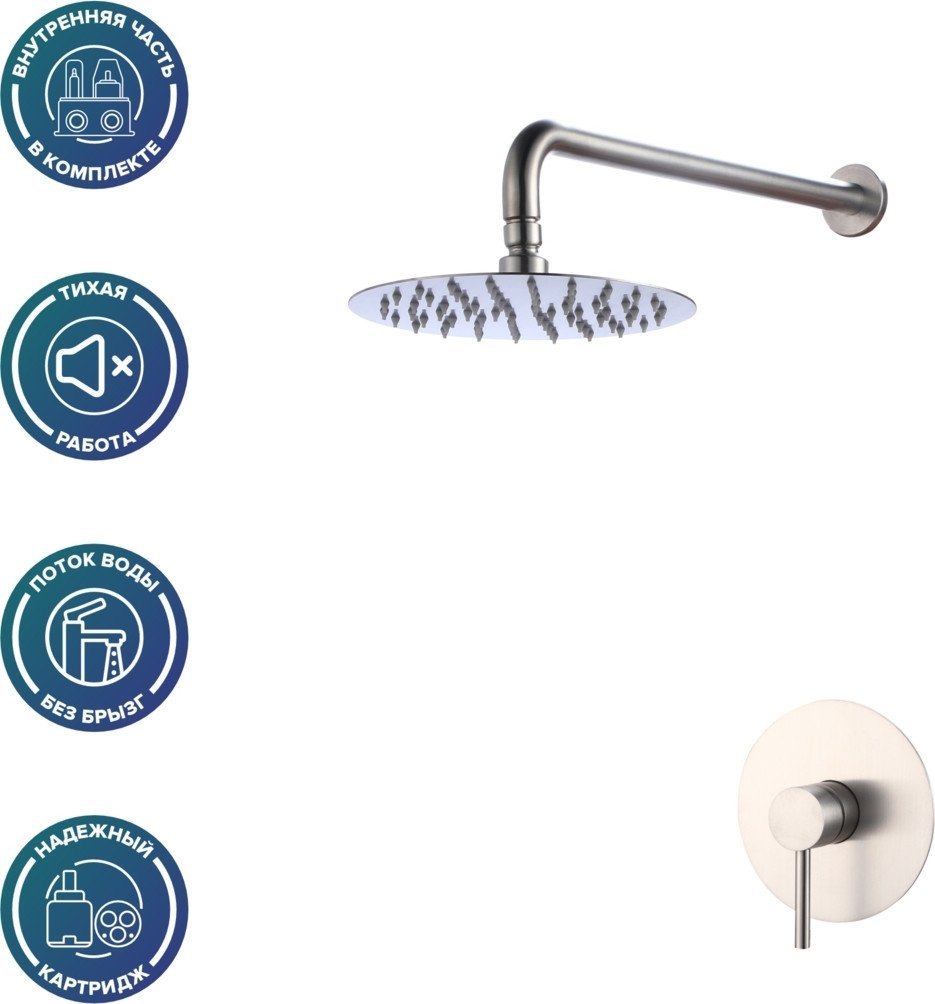 Код товара: 4667408 Рейтинг: 57 4| -7,36 верхний душ, настенный монтаж, механический смеситель, верхний душ 200 мм