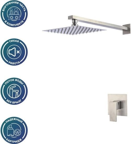 Код товара: 4028065 Рейтинг: 122 4| верхний душ, скрытый монтаж, механический смеситель, верхний душ