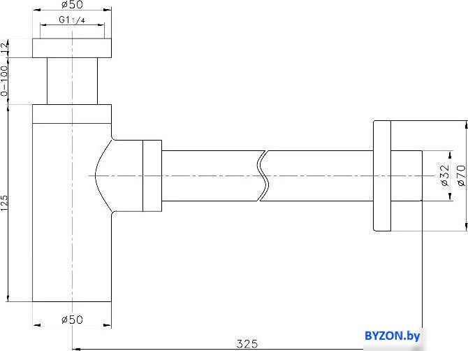 Код товара: 4782029 Рейтинг: 54 13| -48,14 для умывальника, бутылочный, латунь, резьба 1 1/4", слив 50 мм, труба 32 мм, длина 350 мм, гидрозатвор