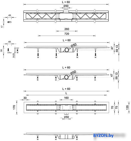 Код товара: 2313989   Рейтинг: 64  9| -50,99 для душа, пластик/сталь, труба 50 мм, длина 500 мм, комбинированный, сливная решетка, цвет крышки: нержавеющая сталь