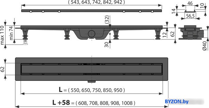 Трап/канал Alcadrain APZ19-850 - купить в Минске