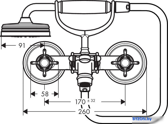 Код товара: 1059395 Рейтинг: 1525 10| двухвентильный смеситель для ванны и душа, монтаж на стену