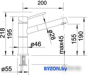 | Длина (вылет) излива | 200 мм |