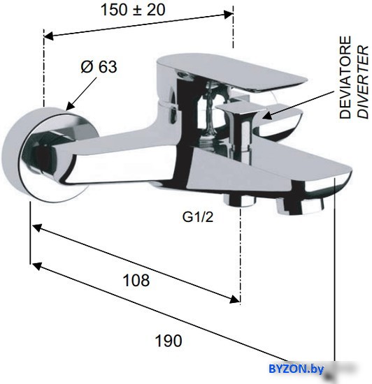 Код товара: 1364056 Рейтинг: 89 1| однорычажный смеситель для ванны и душа, монтаж на стену