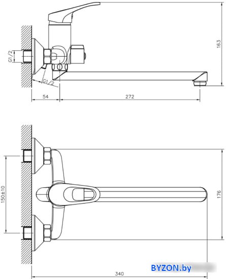 Код товара: 2371191 Рейтинг: 49 5| -97,94 однорычажный смеситель для ванны и душа, монтаж на стену