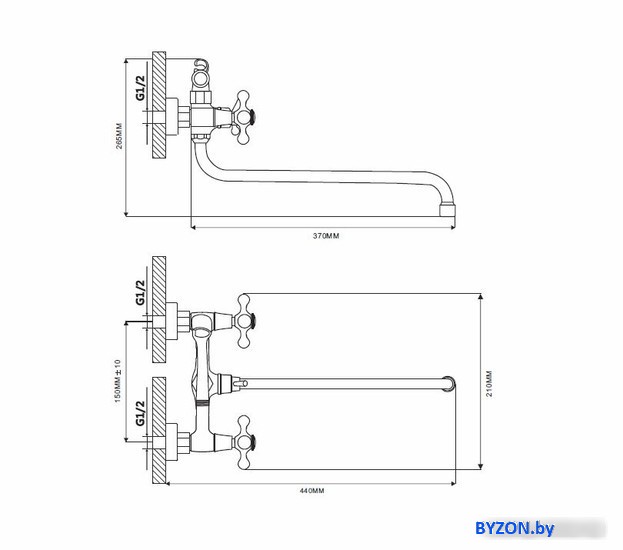 Код товара: 4515351 Рейтинг: 64 10| -40,26 двухвентильный смеситель для ванны, монтаж на стену
