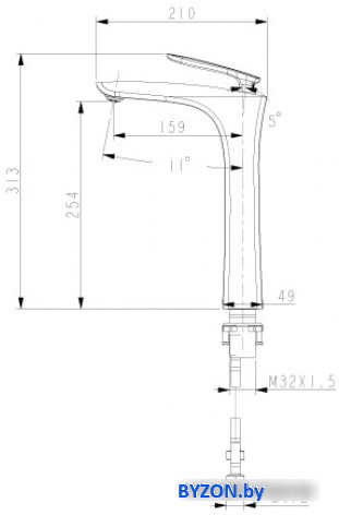 | Длина (вылет) излива | 159 мм |