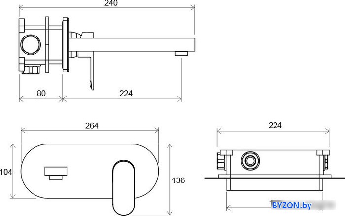 Код товара: 981089 Рейтинг: 309 10| однорычажный смеситель для ванны, монтаж на стену