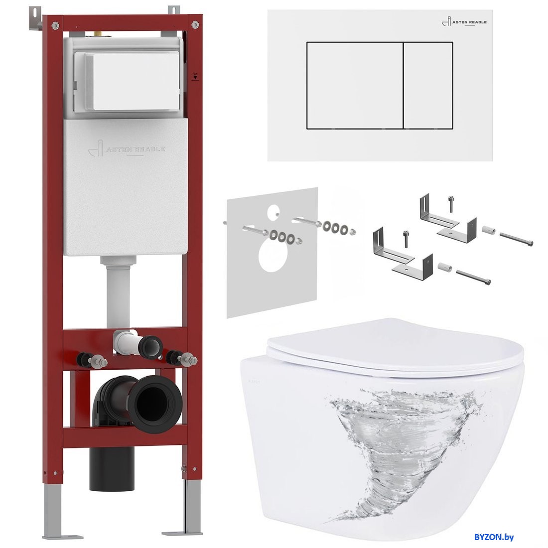 Унитаз подвесной Roxen Antares Tornado в комплекте с инсталляцией Asten Readle Zentralmodul с белой кнопкой - купить в Минске