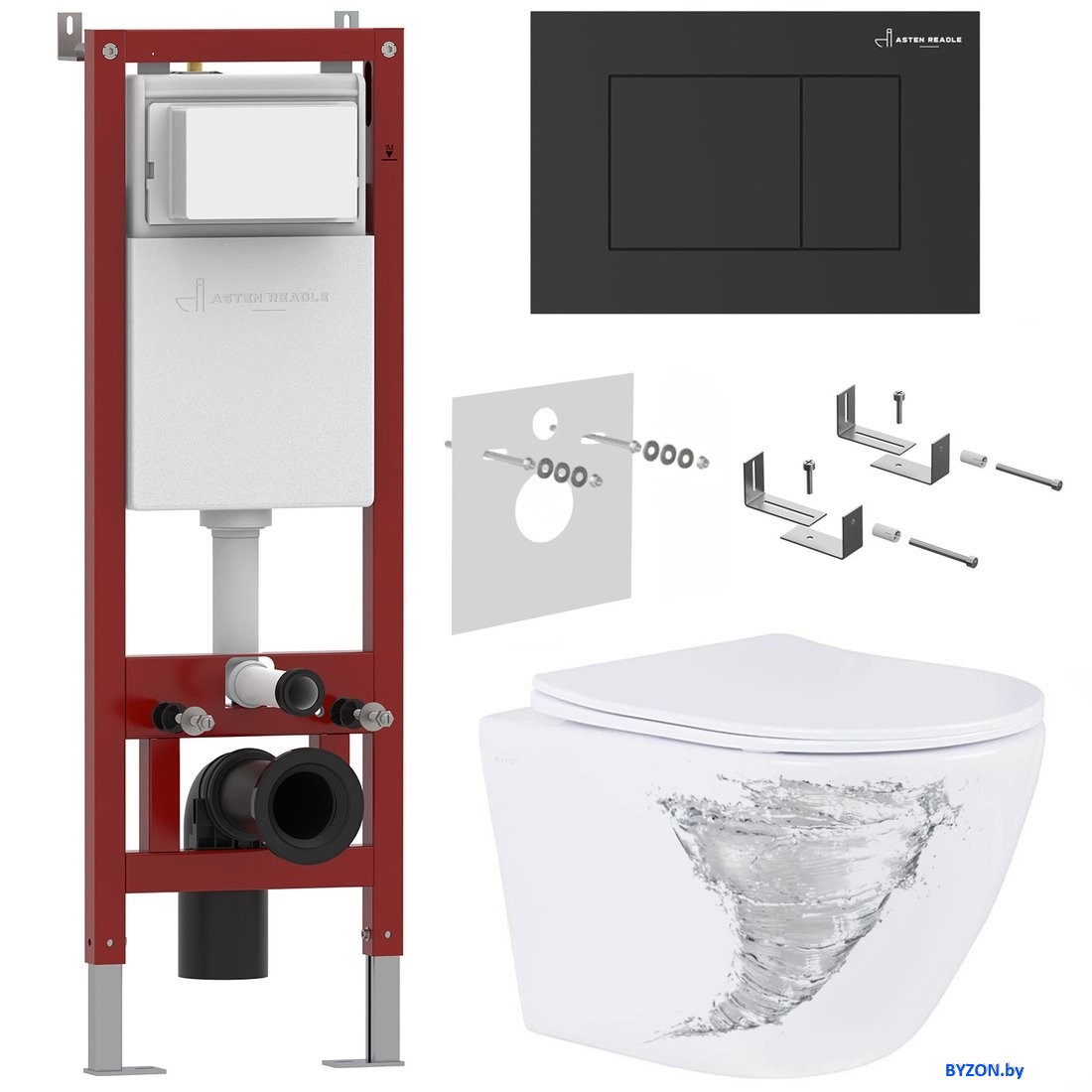 Унитаз подвесной Roxen Antares Tornado в комплекте с инсталляцией Asten Readle Zentralmodul с кнопкой (черный матовый) - купить в Минске