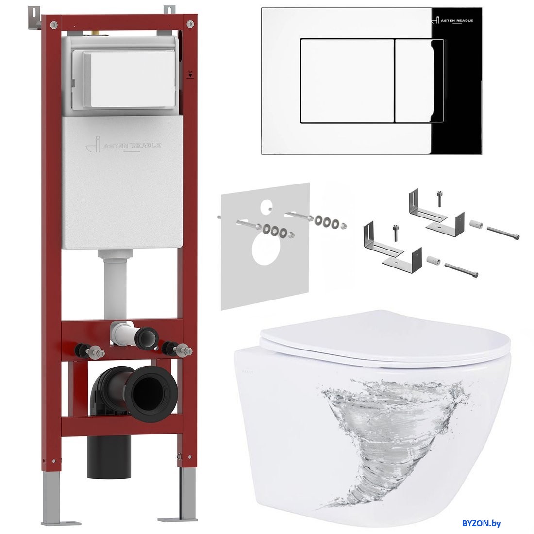 Унитаз подвесной Roxen Antares Tornado в комплекте с инсталляцией Asten Readle Zentralmodul с кнопкой (хром глянец) - купить в Минске