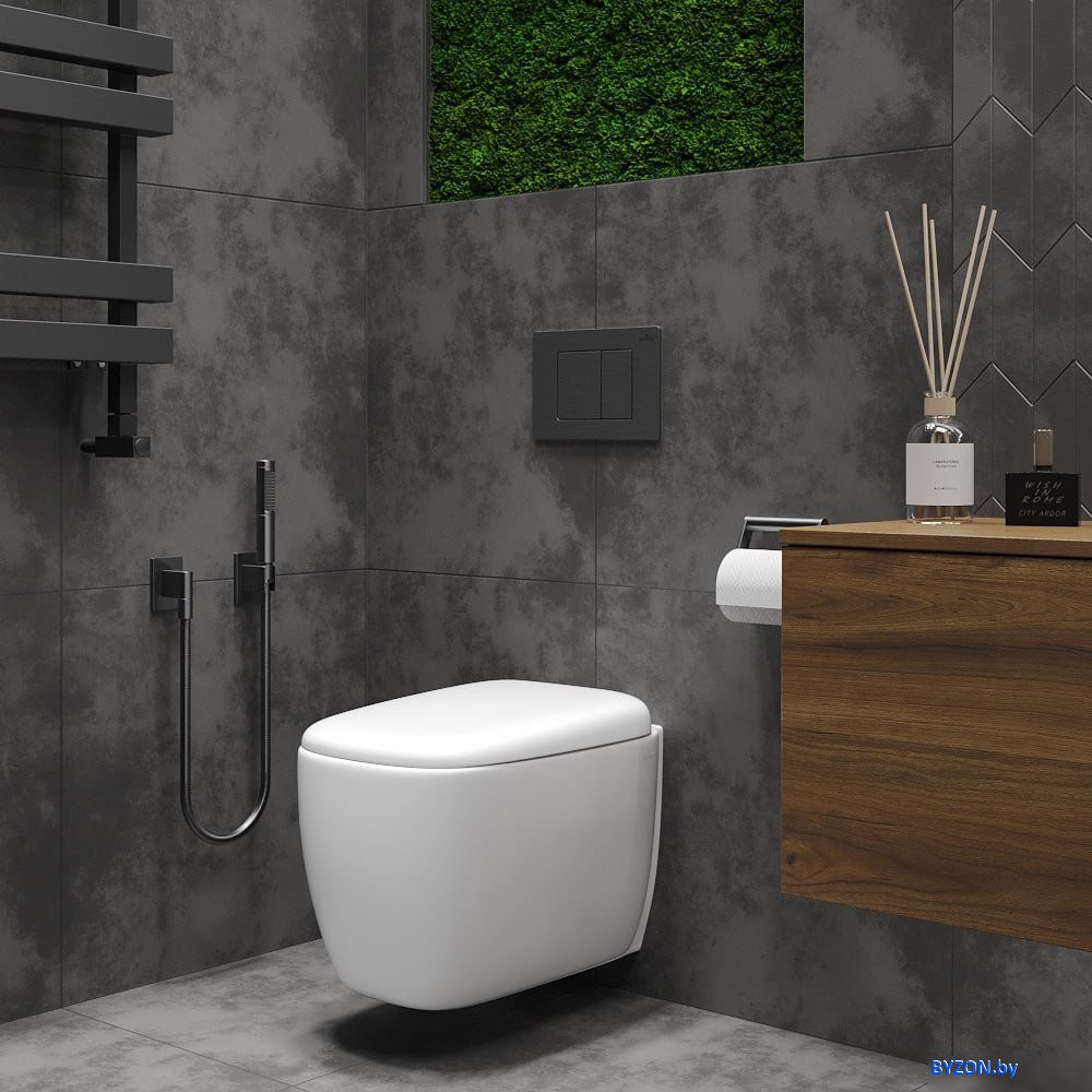 Код товара: 4848551 Рейтинг: 112 1| -0,01 подвесной, конструкция: без бачка, задний подвод воды, горизонтальный выпуск, двухрежимный слив, с сиденьем, безободковый