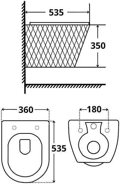 Код товара: 4947033 Рейтинг: 80 1| -0,01 подвесной, задний подвод воды, горизонтальный выпуск, двухрежимный слив, с сиденьем, безободковый