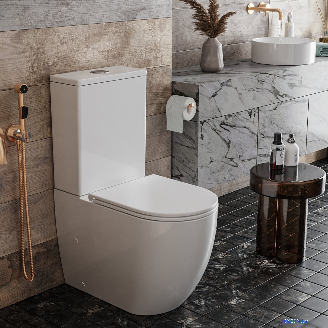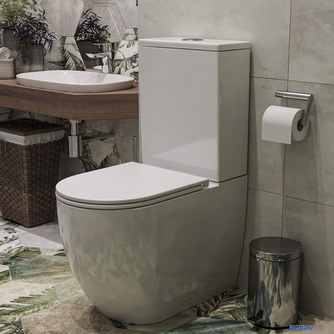 Код товара: 4691501 Рейтинг: 108 1| -10,02 напольный, конструкция: компакт, нижний подвод воды, универсальный выпуск, двухрежимный слив, с сиденьем, безободковый
