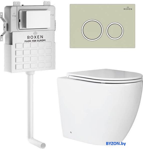 Унитаз приставной Roxen Antares в комплекте с инсталляцией Attach 5 в 1 966911 (кнопка: пастель бежевый) - купить в Минске