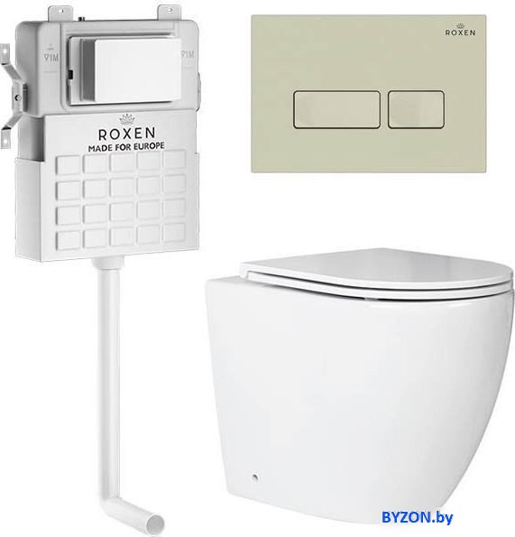 Унитаз приставной Roxen Antares в комплекте с инсталляцией Attach 5 в 1 967071 (кнопка: пастель бежевый) - купить в Минске