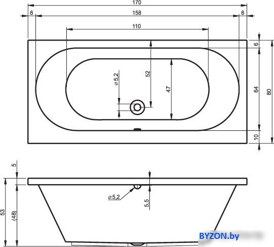 Ванна Riho Carolina 170x80 (с ножками) - купить в Минске