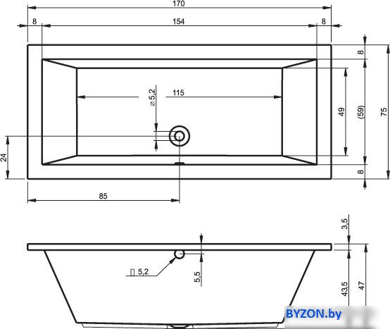 Код товара: 1893682 Рейтинг: 1114 12| прямая, акрил, объем: 170 л