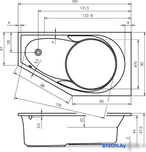 Код товара: 1788010 Рейтинг: 759 4| угловая асимметричная, акрил, объем: 175 л