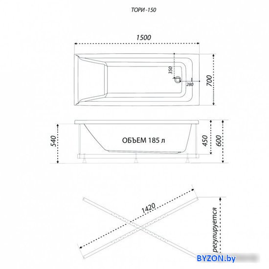 Ванна 1AcReal Тори 160х70 - купить в Минске