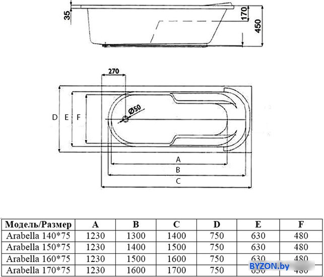 Ванна Alba Spa Arabella 160x75 (с ножками) - купить в Минске