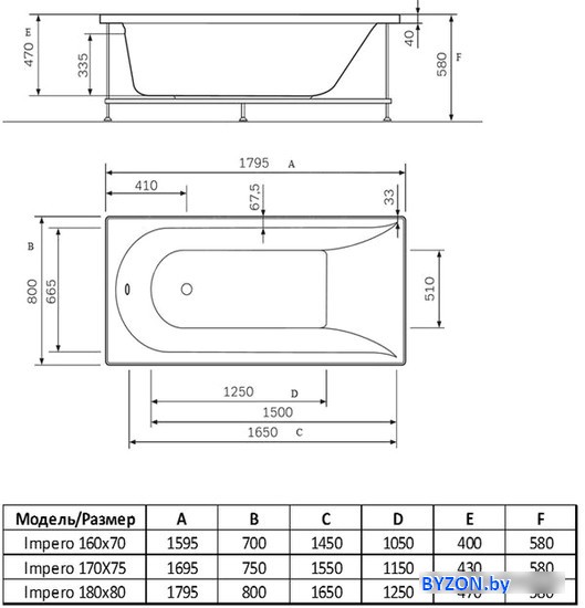 Ванна Alba Spa Impero 180x80 (с ножками) - купить в Минске