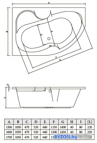 Ванна Bonito Home Arizona 160x105 R (с ножками) - купить в Минске
